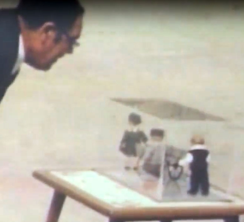Übergabe eines Modells "Schott'sche Karre" an den Firmengründer Robert Krebs am 05.06.1974. Zu sehen sind Vertreter der Shell AG und Frau Hildegard Krebs.