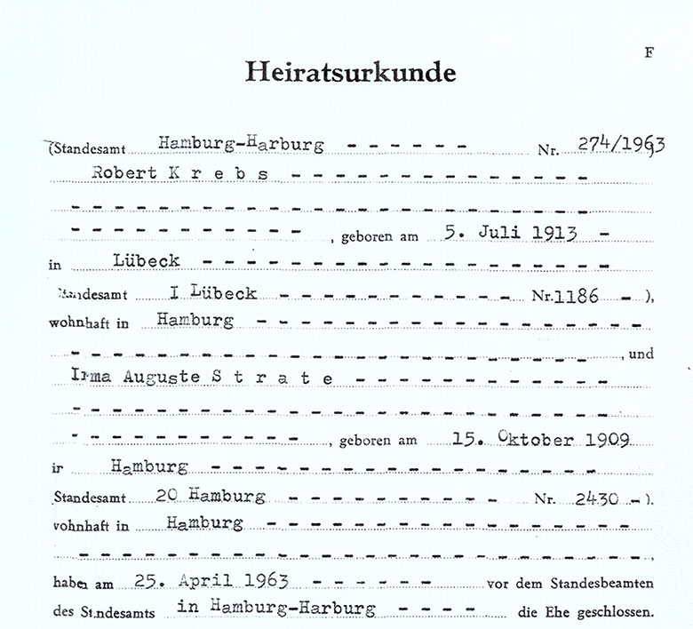 Der Firmengründer heiratet in 2. Ehe Irma Strate am 25.4.1963 in Hamburg