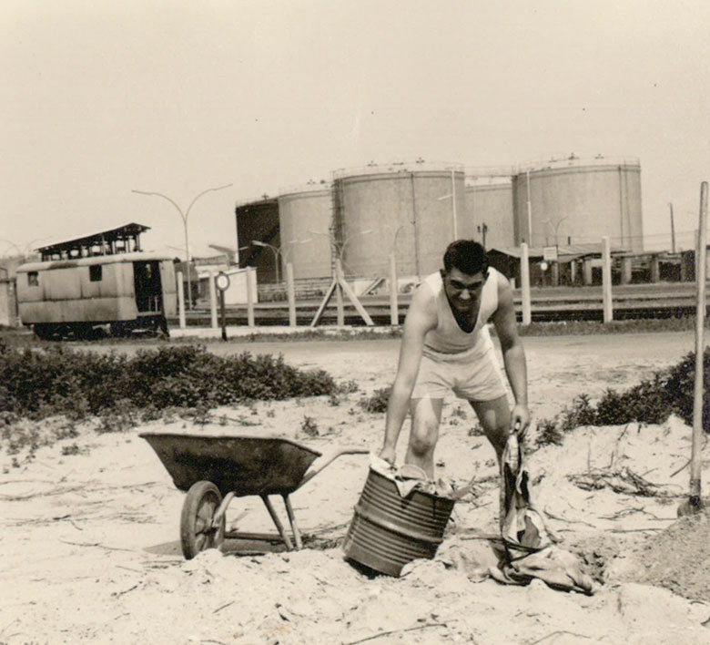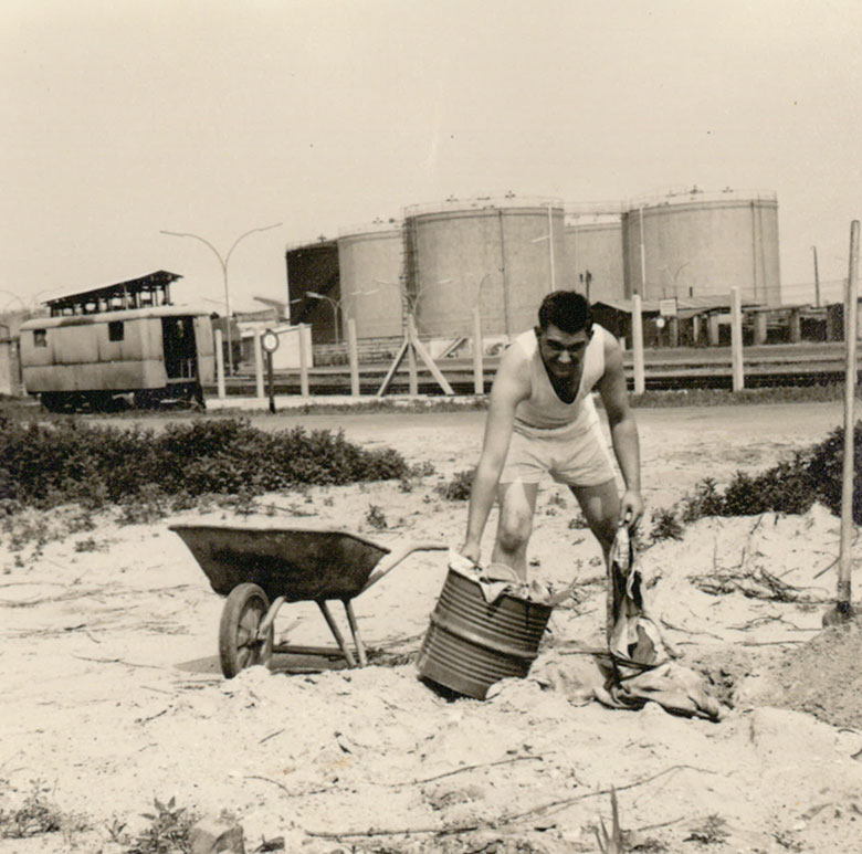 Unterwegs mit Iberia nach El Ayoun, Spanisch-Sahara. Der Juniorchef auf dem Weg zur Baustelle der Meerwasserentsalzungsanlagen, in die die Firma Krebs die Beschichtungen eingebracht hat.