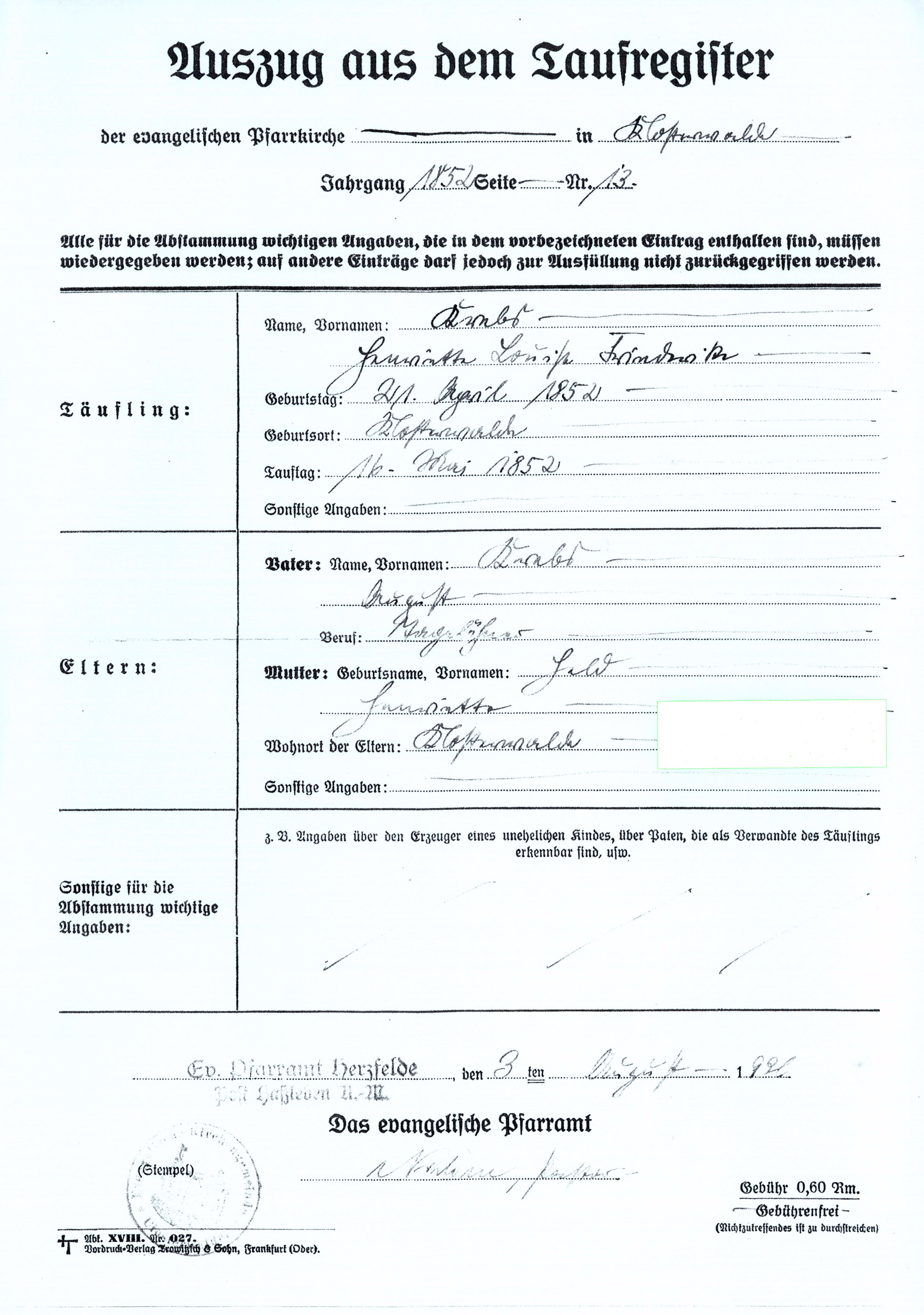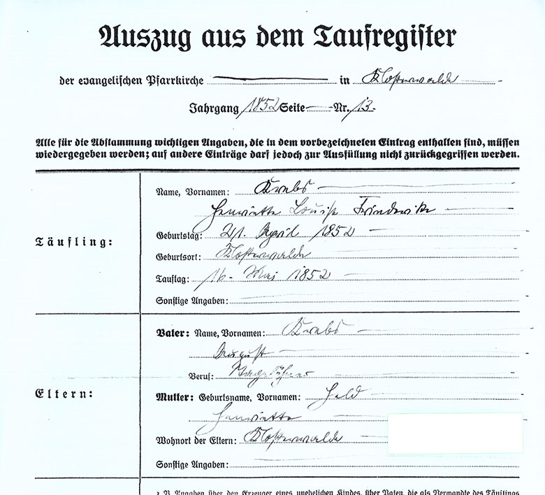 Taufschein Vorfahren