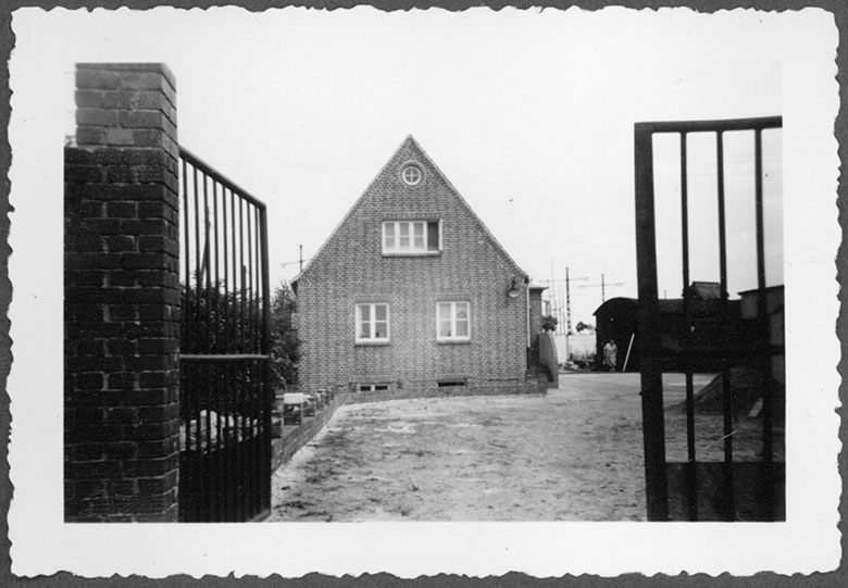 Das Dach auf dem neuen Domizil wird gesetzt. Damals „Alte Fähre“. In dem Haus war die Verwaltung untergebracht sowie die Privatwohnung von Gustav Krebs